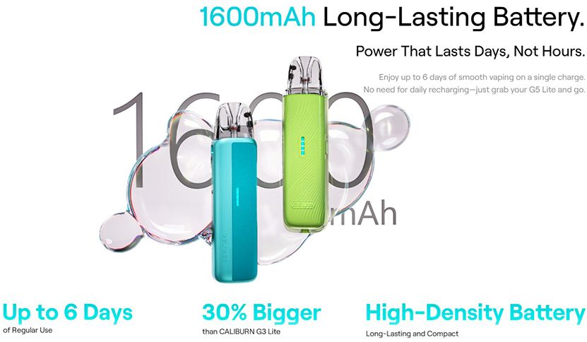 Caliburn G5 Lite SE Kit , şık renk seçenekleriyle birinci sınıf deri kullanılarak tasarlanmıştır. 1600mAh uzun ömürlü pil, 6 güne kadar sorunsuz bir vaping performansı sunar. PRO-FOCS 4.0 teknolojisiyle güçlendirilmiş olup, kartuş ömründe ve lezzet memnuniyetinde %35 artış sağlar. 4 kademeli LED ışık, gerçek zamanlı pil seviyesini gösterir. Çift ayarlanabilir hava akışı kontrolü (MTL'den RDL'ye) ise size çok yönlü bir vaping deneyimi sunar. Uwell Caliburn G5 Lite SE, GPP ve Caliburn G3 kartuşlarıyla uyumludur. Güç ve şıklığın birleşimini deneyimleyin!