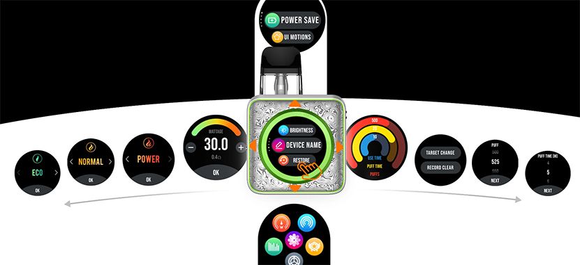 Xros 5 Nano Pod Kit, ultra şık görünümü ve hafif taşıma özelliğiyle öne çıkıyor. 30W maksimum güç ve 2A hızlı şarj özelliğiyle uzun süreli vaping deneyimi sunan dahili 1600mAh bataryaya sahip. Güç/ECO/Normal modları ve hassas hava akışı ayarıyla her nefesi tercihinize göre ayarlayabilirsiniz. 1.09 inç dokunmatik ekranıyla kişiselleştirilmiş stil için 29'dan fazla dinamik tema ve bildirimlere, kutucuklara ve hızlı ayarlara hızlı erişim sunuyor. Ayrıca kapalı döngü izleme, nefes hatırlatıcıları ve kullanım geçmişi gibi gerekli vaping bilgilerini de gösteriyor. Corex 3.0 teknolojisini benimseyerek daha zengin bir tat ve daha pürüzsüz bir vaping deneyimi sunuyor. Tüm Xros Serisi Pod Kartuşlarıyla uyumludur.
